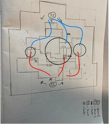 When creating this multiplayer level I took inspiration from several Call Of Duty maps and applied a “three lane” system. The three lane system is where players tend to use the left and right lane of the map to flank or kill players within the central lane/ most contested area. Where the lanes meet is named a collision point. To see how effective this system was I applied a user study. This was to test and then further improve my level. This helped me critically evaluate my level.