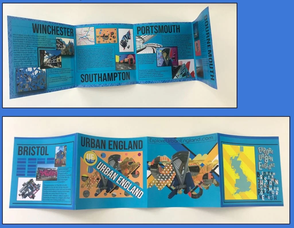 The use of Photoshop and Illustration allowed me to create a leaflet with the theme "Urban Landscapes and Cities". This was to explore the dynamic and vibrant nature of cities in the South of England. I selected Southampton, Portsmouth, Winchester, and Bournemouth for their unique characteristics, as I had previously visited these cities and was familiar with their notable areas. My aim was to photograph and document various aspects of urban life, including architecture, transportation, and bustling streets, while also highlighting the diverse cultures within.